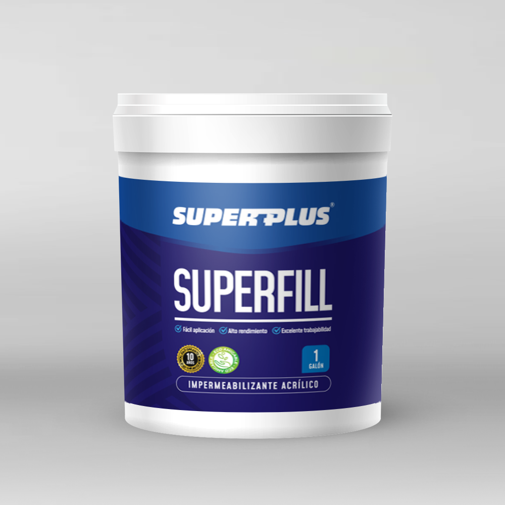 Aplique SUPERFILL para impermeabilizar sobre la superficie a tratar con rodillo o brocha, asegurando la penetración en fisuras y grietas. Deje secar aproximadamente 1 hora a 25ᵒC dependiendo de las condiciones ambientales y asegure una buena impermeabilización con mínimo dos capas. Una vez seca la primera capa aproximadamente de 2-3 horas, aplique una segunda capa de SUPERFILL para sellar y dar acabado final.